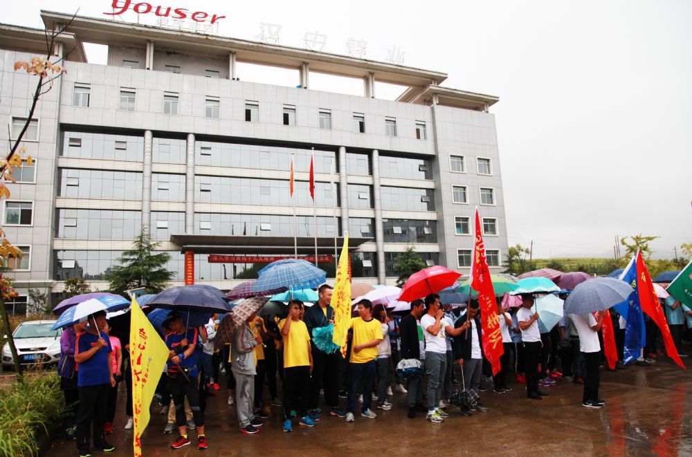 7:30分,秋雨洗禮后的漢中鋅業(yè)格外清新靚麗,辦公樓前,鮮艷的國旗高高飄揚,紅黃藍(lán)綠各色隊旗迎風(fēng)招展。秋雨霏霏,秋風(fēng)瑟瑟,陣陣寒意卻絲毫阻擋不住漢鋅人火熱的激情,精神抖擻的各代表隊隊員在各自隊旗下集結(jié),整裝待發(fā)。