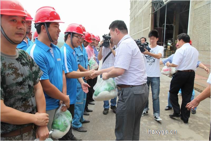 在生產(chǎn)現(xiàn)場,魏副市長發(fā)表了簡短的講話。他首先代表市委、市政府向炎炎夏日仍然奮戰(zhàn)在生產(chǎn)一線的鋅業(yè)公司職工表示親切的慰問和衷心的感謝。他指出,漢中鋅業(yè)公司廣大職工在酷暑中依然堅守崗位,奮戰(zhàn)在生產(chǎn)第一線,為全市經(jīng)濟發(fā)展作出了貢獻。將這些防暑降溫物品發(fā)放到大家手中,一是希望大家能夠在崗位中體會到一點清涼,更好地立足崗位,做好本職工作;二是提醒大家一定要做到安全生產(chǎn),在做好防暑降溫工作的同時,堅決杜絕安全隱患發(fā)生;三是希望公司繼續(xù)加快發(fā)展,爭取做到企業(yè)有發(fā)展,職工得實惠,為漢中地方經(jīng)濟發(fā)展做出新的更大的貢獻。