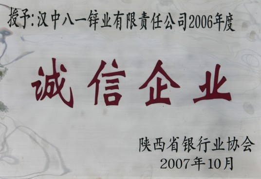 2007年漢中八一鋅業有限責任公司2006年度誠信企業