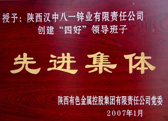 2007年陜西漢中八一鋅業有限責任公司創建“四好”領導班子先進集體 -
