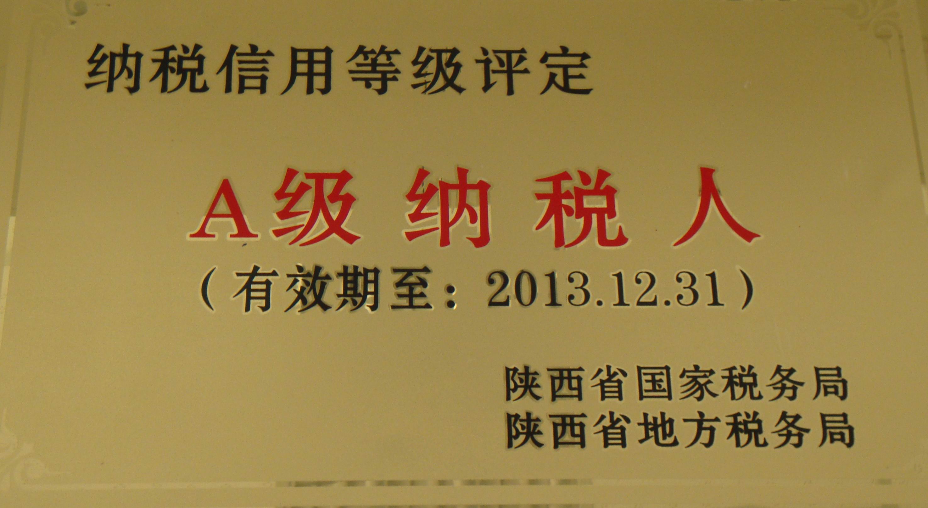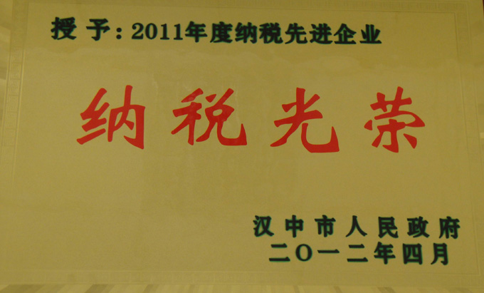 2012年榮獲漢中市“納稅先進企業”稱號 -