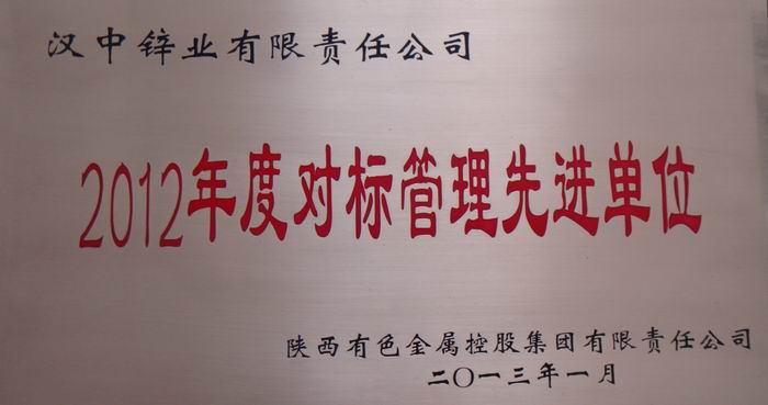2013年1月,公司被陜西有色金屬控股集團有限責任公司授予2012年度“對標管理先進單位”榮譽稱號 -